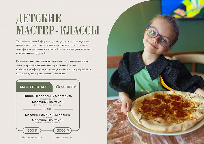 - в обособленном зале рядом с детской (вместительность до 24 гостей).