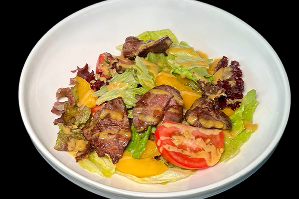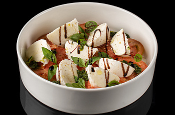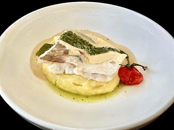 Состав: говядина томленая, масло сливочное,растительное,соус трюфельный деми гляс, соус песто,черри,соус итальянский, полента, пармезан.