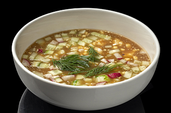 Холодный суп, который идеально подходит для жарких летних дней. В этом блюде нежные кусочки отварной говядины гармонично сочетаются с хрустящими овощами: свежими огурцами, редисом и зелёным луком. Подается с квасом и сметаной